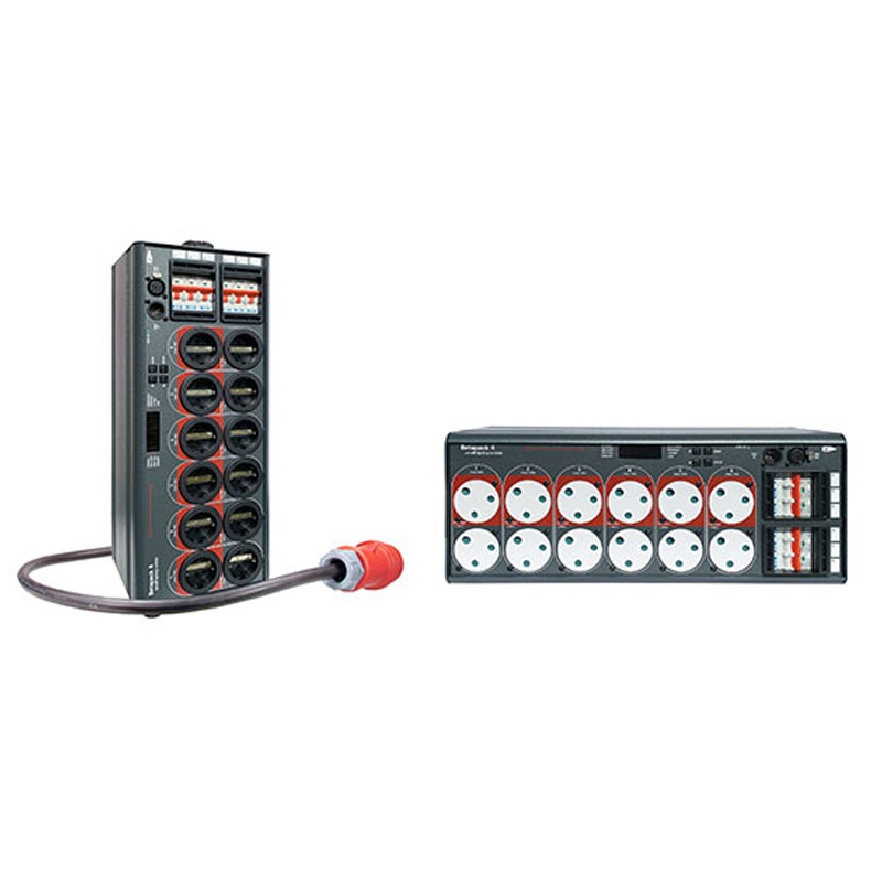 12 x 16A CEE17 Sockets (6 x dimmed, 6 x hot power), 12 x Neutrik PowerCON TRUE1 TOP (6 x dimmed, 6 x hot power)