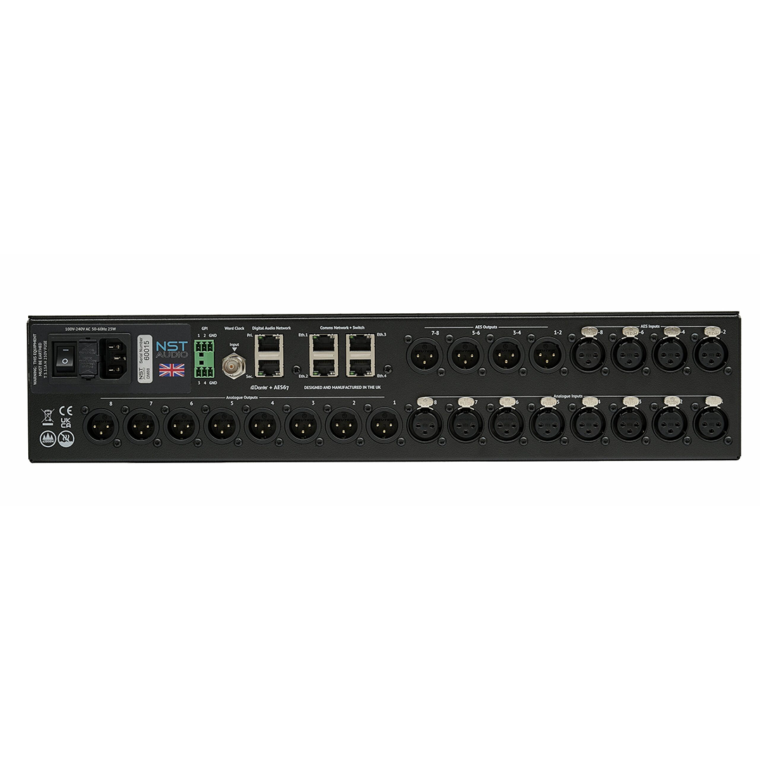 • 8 Analogue Inputs; 4×2 AES3 Digital Inputs (with