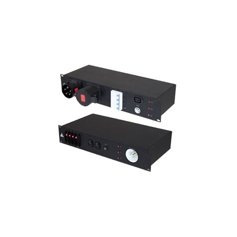 The 19”, 2U Adamson AC Panel is available in two versions – 120 V and 230 V. The 120 V version comes with a single 3-phase L21-30 input socket, and the 230 V version comes with CEE 32 A 3-phase input and link connections. Each version comes with three hard-wired 32 A Powercon™ connections, as well as auxillary power plugs.