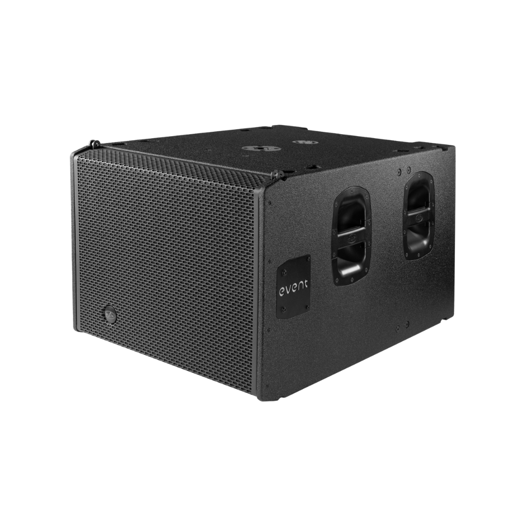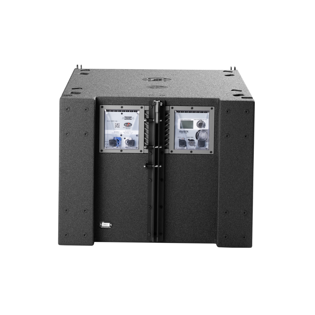 The EVENT-118A is a robust powered subwoofer system that incorporates a front-loaded 18” low-frequency transducer developed by DAS, designed to deliver profound and accurate bass reinforcement. As the companion subwoofer for the EVENT-28A, it shares a compatible rigging system, allowing for seamless integration whether the EVENT-28A is flown from or stacked above the EVENT-118A.