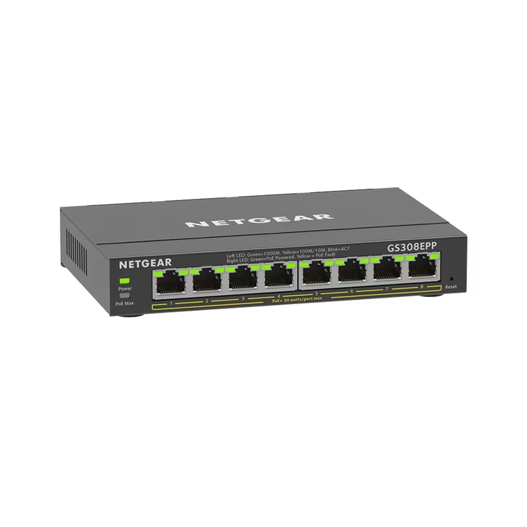 Easy to manage, fundamental network features at an affordable cost for SMBs. GS308EPP offers 123W total power budget to power devices PoE devices such as VoIP phones, IP cameras, wireless access points, etc.