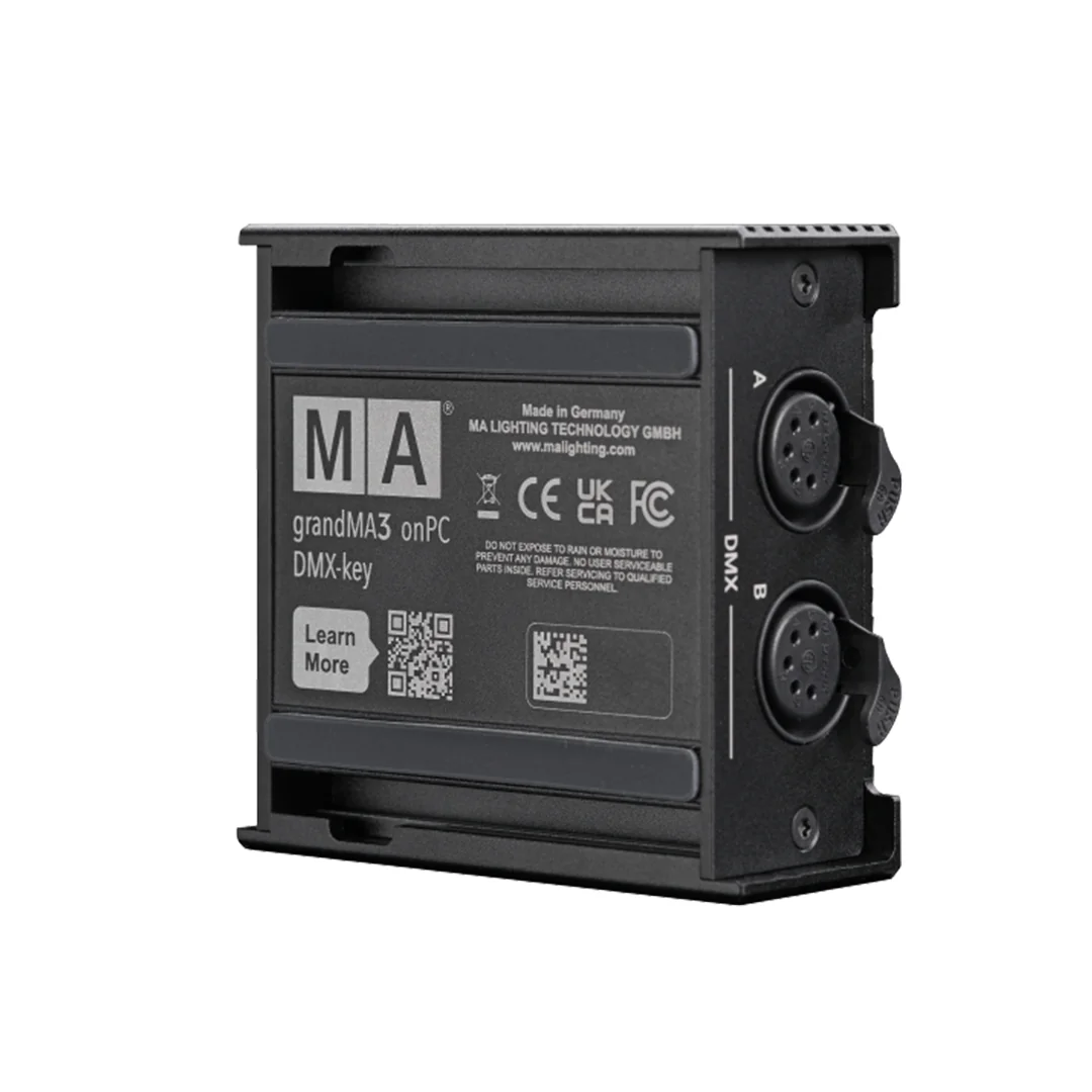 The grandMA3 onPC DMX-key is a powerful solution for achieving professional lighting results in compact and flexible environments. It unlocks 4 096 parameters directly via a simple USB-C connection to the free of charge grandMA3 onPC software. It provides the performance and reliability of the grandMA3 platform, eliminating the need for dedicated consoles or complex infrastructure.