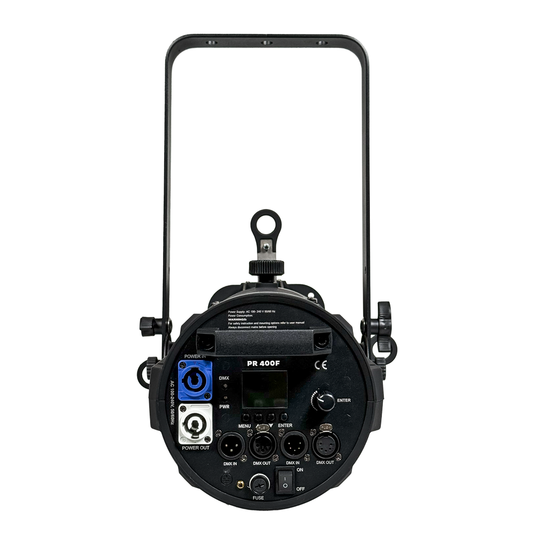 PR 400F is a 400 watts RGBW LED Profile. With a multicolor COB LED source, it can deliver a flat and even field of light with bright color output and a smooth color transition. An optional high performance Fresnel lens with barn doors can replace the profile lens offering an even Fresnel wash from the same LED engine. This LED profile offers a high quality output making it ideal for theatres, schools, studios and events application.