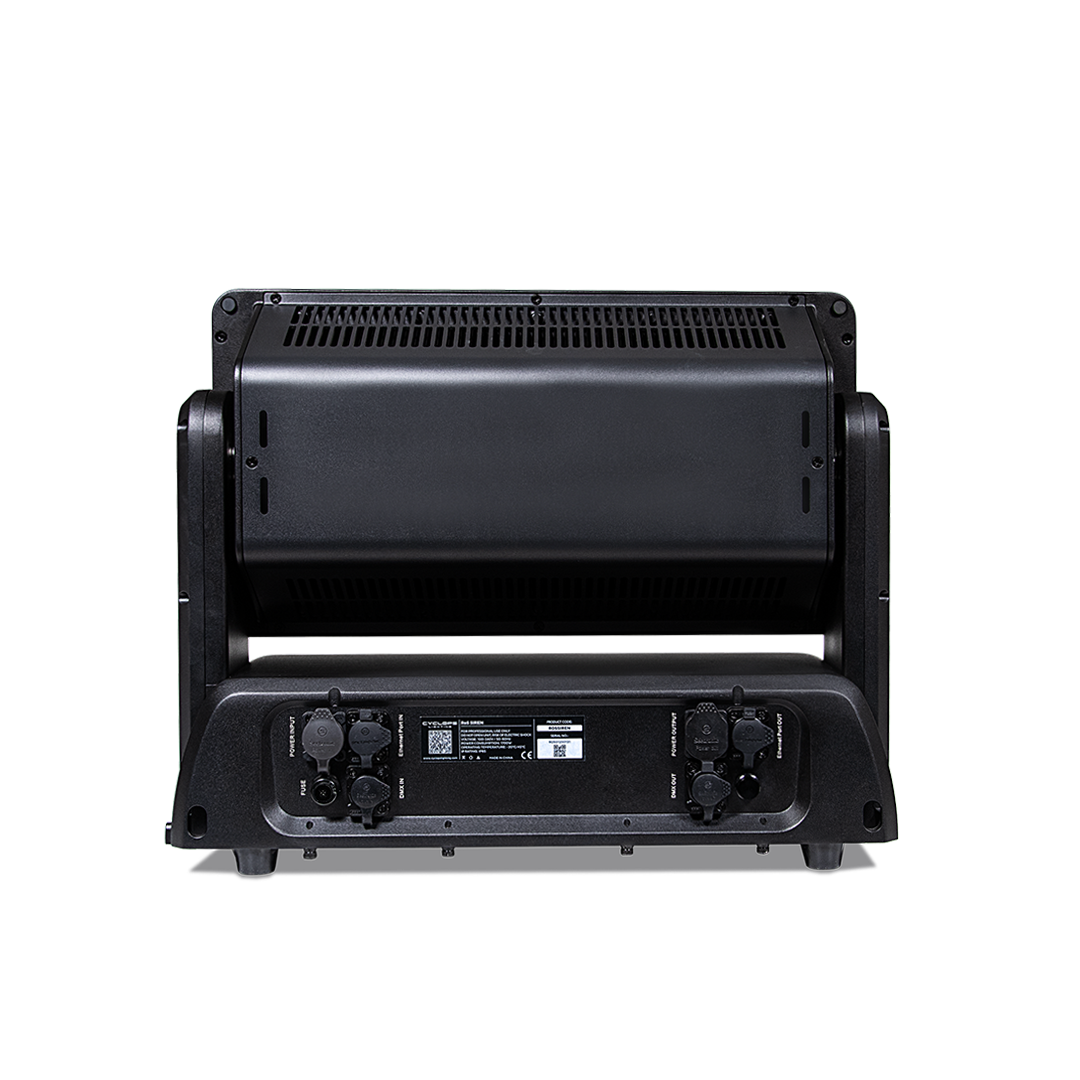 The RoS (Rain or Shine) SIREN is a high-performance, IP65-rated strobe fixture. It features both a panel and tube strobe in one unit for maximum creative flexibility. The panel is equipped with 864 x 1.6W RGBW 4-in-1 LEDs, arranged in 24 individually controllable segments (3 x 8). The strobe tube features 576 x 1W CW (cool white) LEDs, arranged in 96 individually controllable segments (24 x 4). Control is facilitated via DMX (up to 92 channels), Art-Net, and sACN, enabling precise effect programming for diverse indoor and outdoor applications.