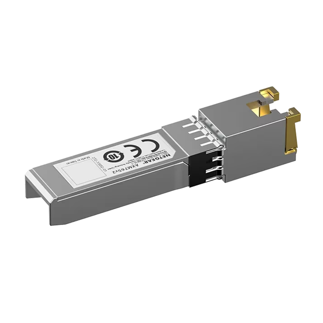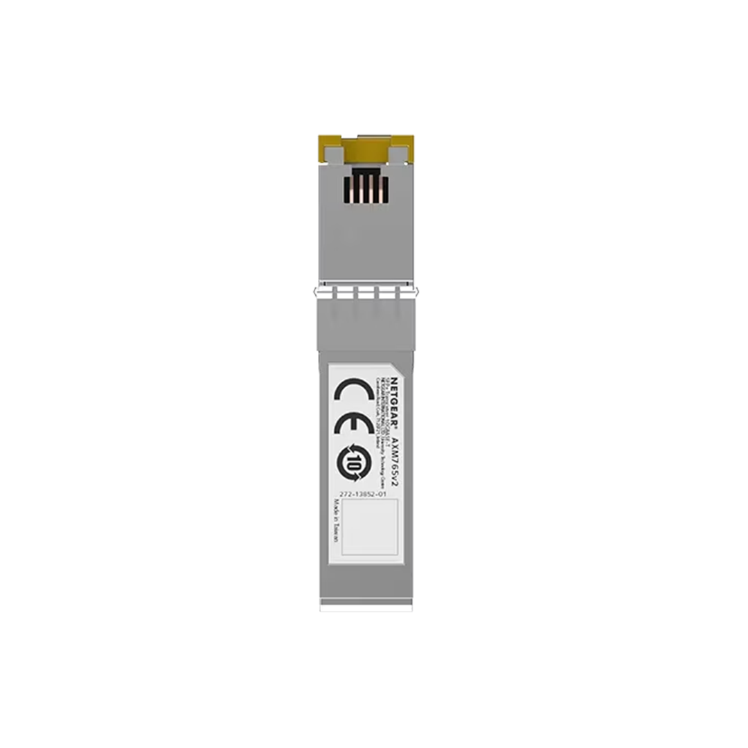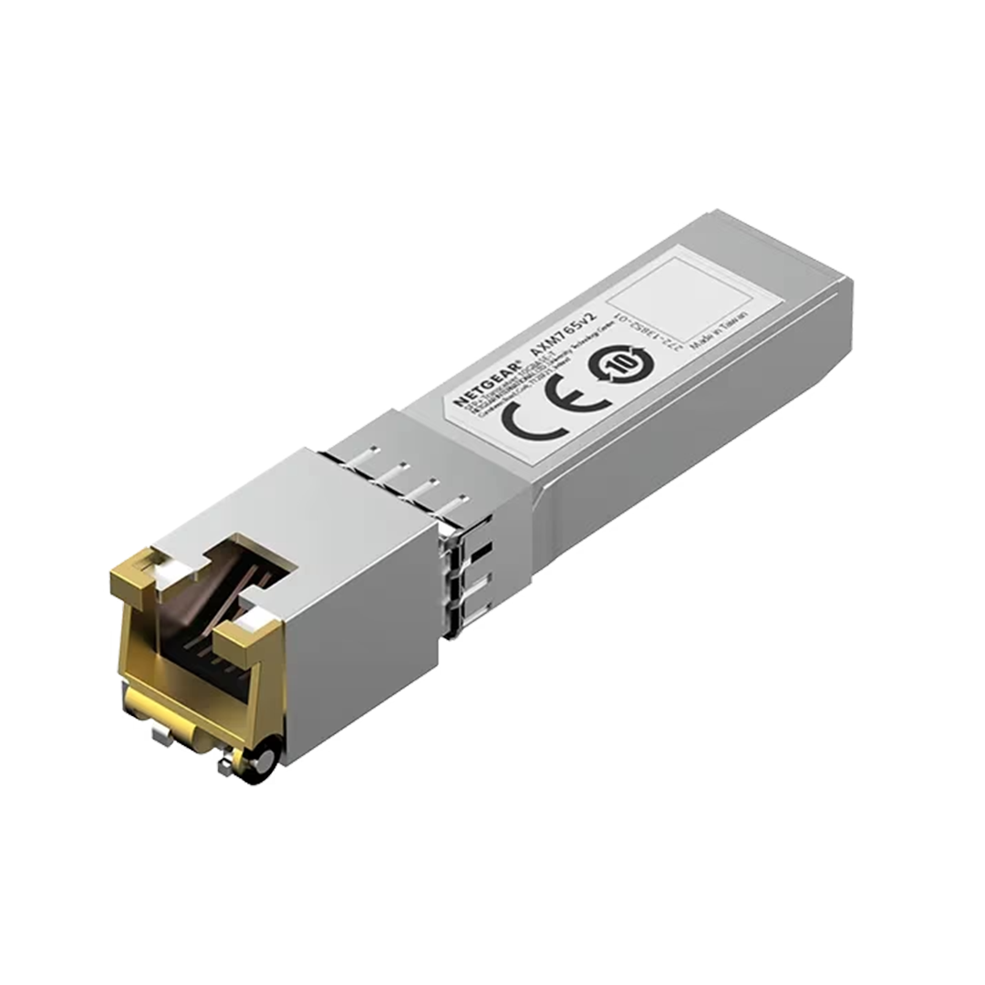 NETGEAR ® 10GBASE-T SFP+ Transceiver (AXM765v2) delivers 10G copper connectivity with CAT6a or CAT7 cabling up to 80 meters (262.5 feet) when inserted in a switch SFP+ fiber module slot. The AXM765v2 fits into SFP+ or SFP28 interfaces of M4250, M4300, and M4500 Managed Switches