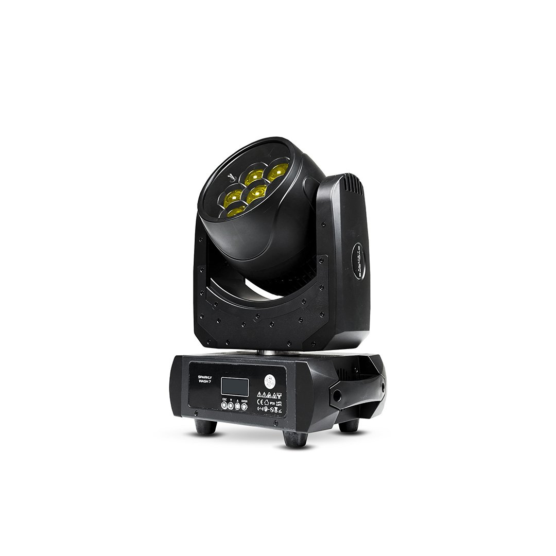 SPARKLY WASH 7 is a small in size, fast in movement and versatile in effects LED moving head zoom wash. It is powered by 7 x 15 Watts RGBW LED featuring a zoom angle of 7.9° to 38° and a pixel by pixel level of control. This range of dynamic effects makes this compact moving head ideal for small venues, clubs, theatre and indoor events.