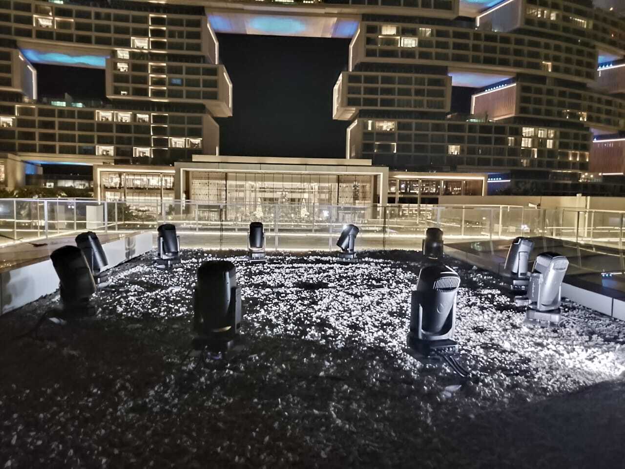 Milos, the renowned Mediterranean seafood restaurant at Atlantis The Royal, has elevated its dining experience with a high-intensity aerial light display. At the heart of this visual element is Ayrton, selected for its ability to deliver a powerful atmospheric presence.Perched on the open-air Milos rooftop, ten Mamba fixtures create dynamic pillars of light. Utilizing a specialized laser-phosphor engine, the Mamba delivers a staggering 2,600,000 lux at 10 meters, ensuring the beams remain vivid and sharp even against the intense ambient glow of the Dubai skyline. Its proprietary optical system provides a versatile zoom range from a razor-sharp 0.7° beam to a 15° wash.