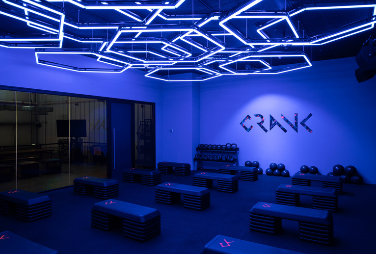 Crank is a class-based, boutique studio open in AL Quoz’s Alserkal Avenue. The venue offers a wide range of workout programs, all featuring complete Audio Visual integration through their classes and training spaces. The concept behind the new Madrix installation was to incorporate Traditional Arabic geometry and pattern work into a three dimensional, pixel mapped roof structure. For this, a Hexagon shaped ceiling was made out of 114 indoor RGB Digital LED Bars Pixibar 48-IS from Cyclops Lighting. These LED bars were pixel mapped and controlled by Madrix using Madrix USB one, Madrix Luna 16 and Madrix Luna 4