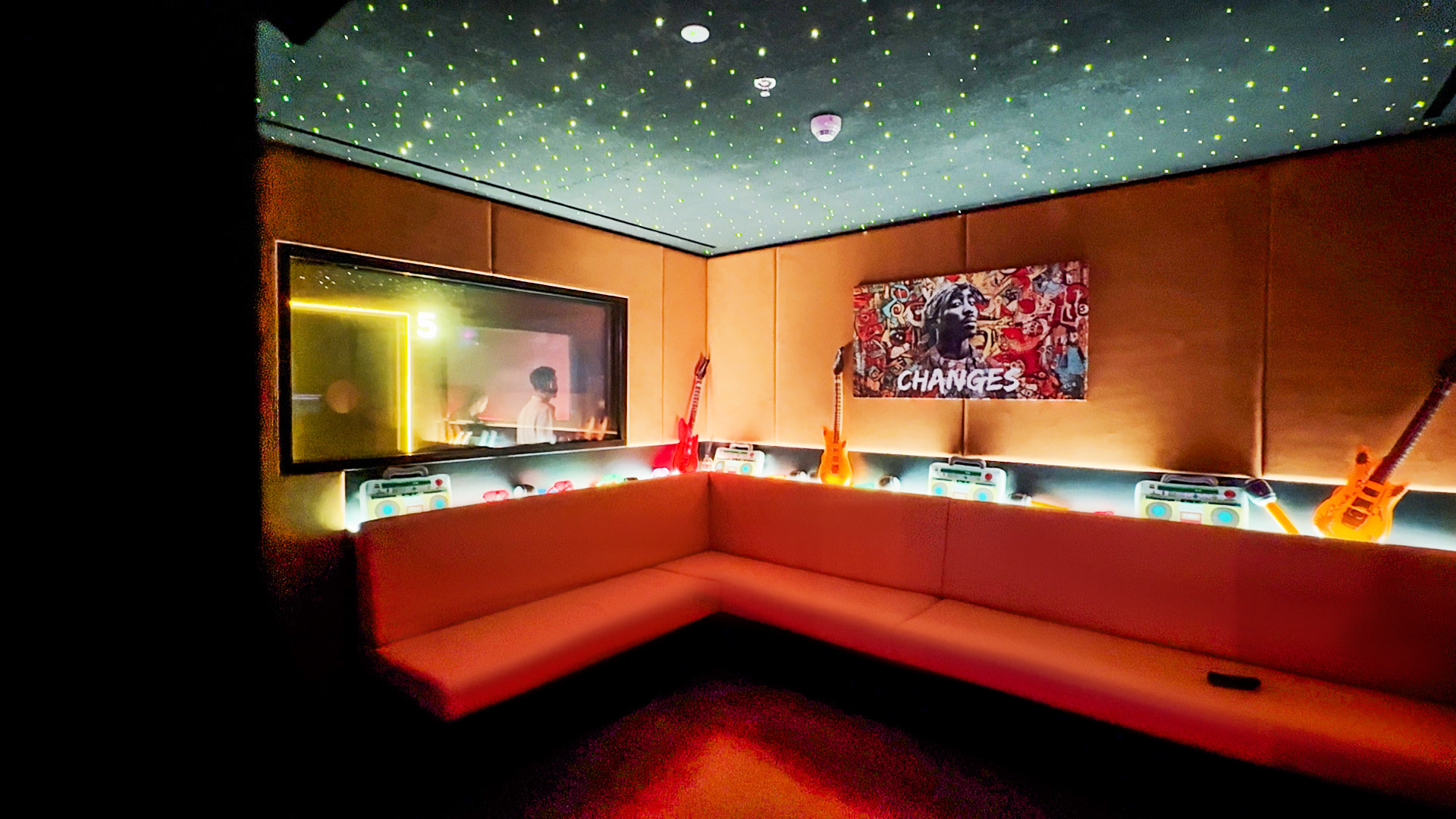 The venue features seven karaoke rooms, three VIP and four standard, each treated as an isolated, self-contained system. This decision was a deliberate departure from previous projects, where centralized server rooms created unnecessary complexity. “In previous projects, we used to make a server room and then connect all the rooms together,” says Tomas. “So we decided that for Replay, we were going to do each room individually. That means if one goes down, all the other rooms are working perfectly.”