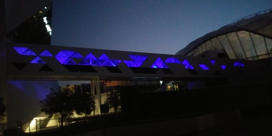 All the lighting fixtures were connected to Madrix Aura via W-DMX using 4 x Whitebox F-2 G5 transceivers. Madrix Aura standalone lighting controller controls the wash effect, changes colors during the week, and schedules the effect so that it turns on and off automatically. Looks for all the holiday events were also programmed, including UAE national day.